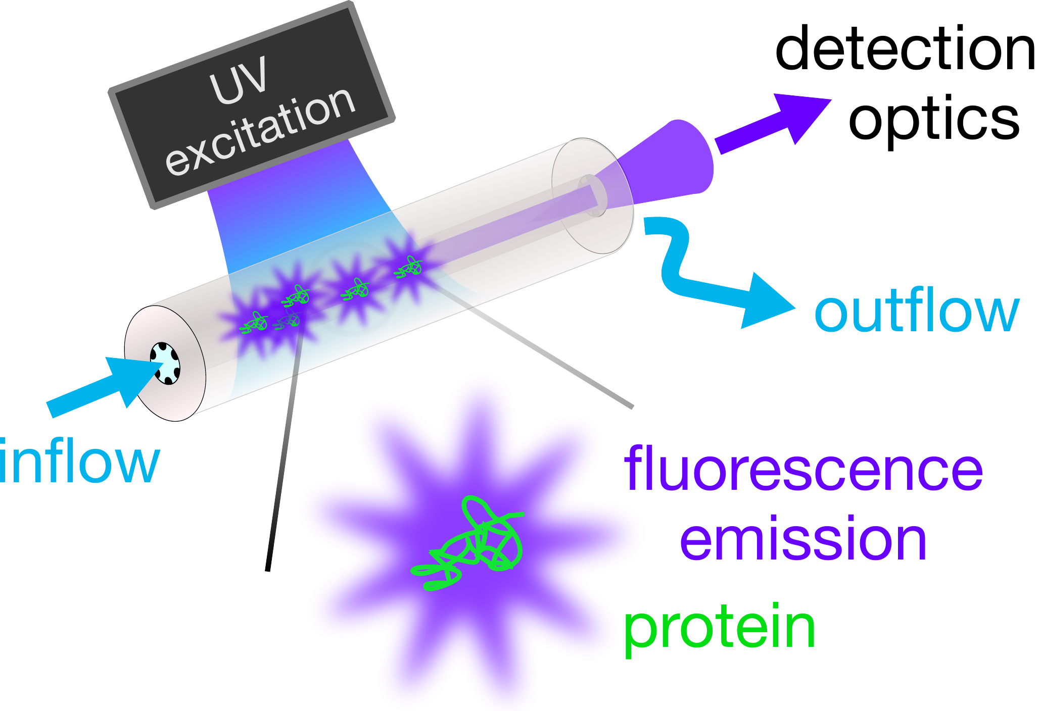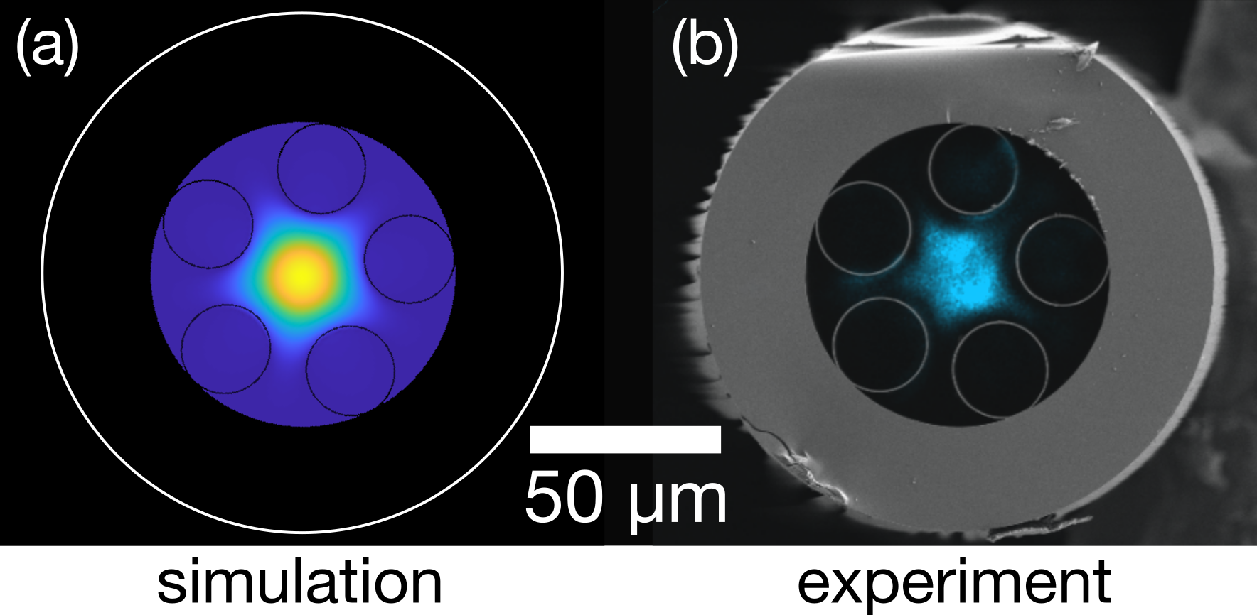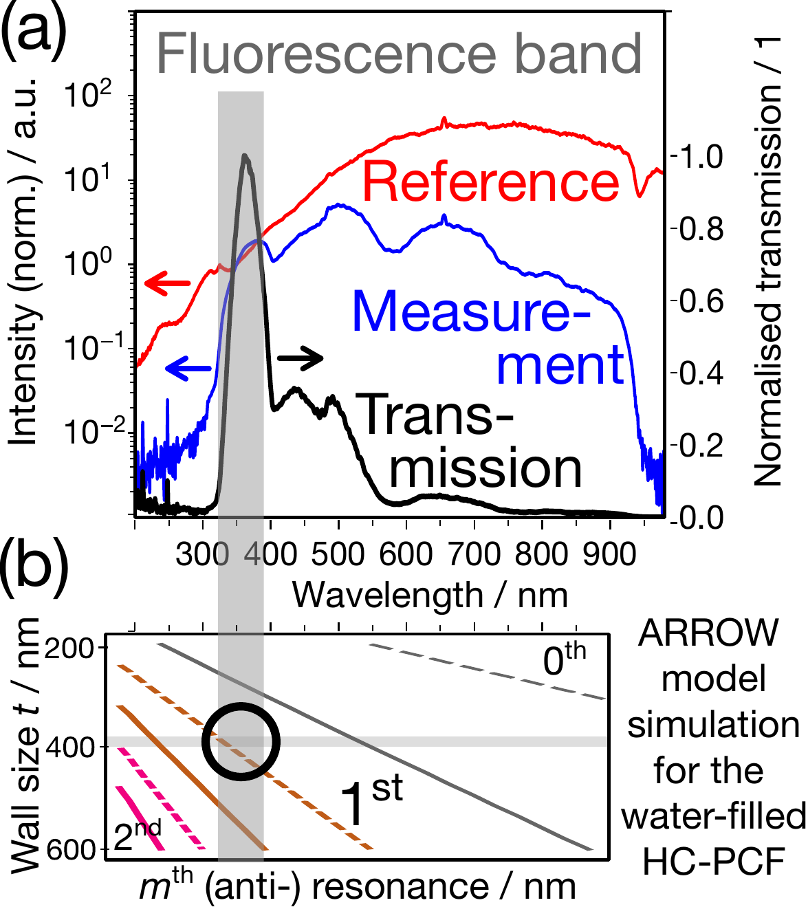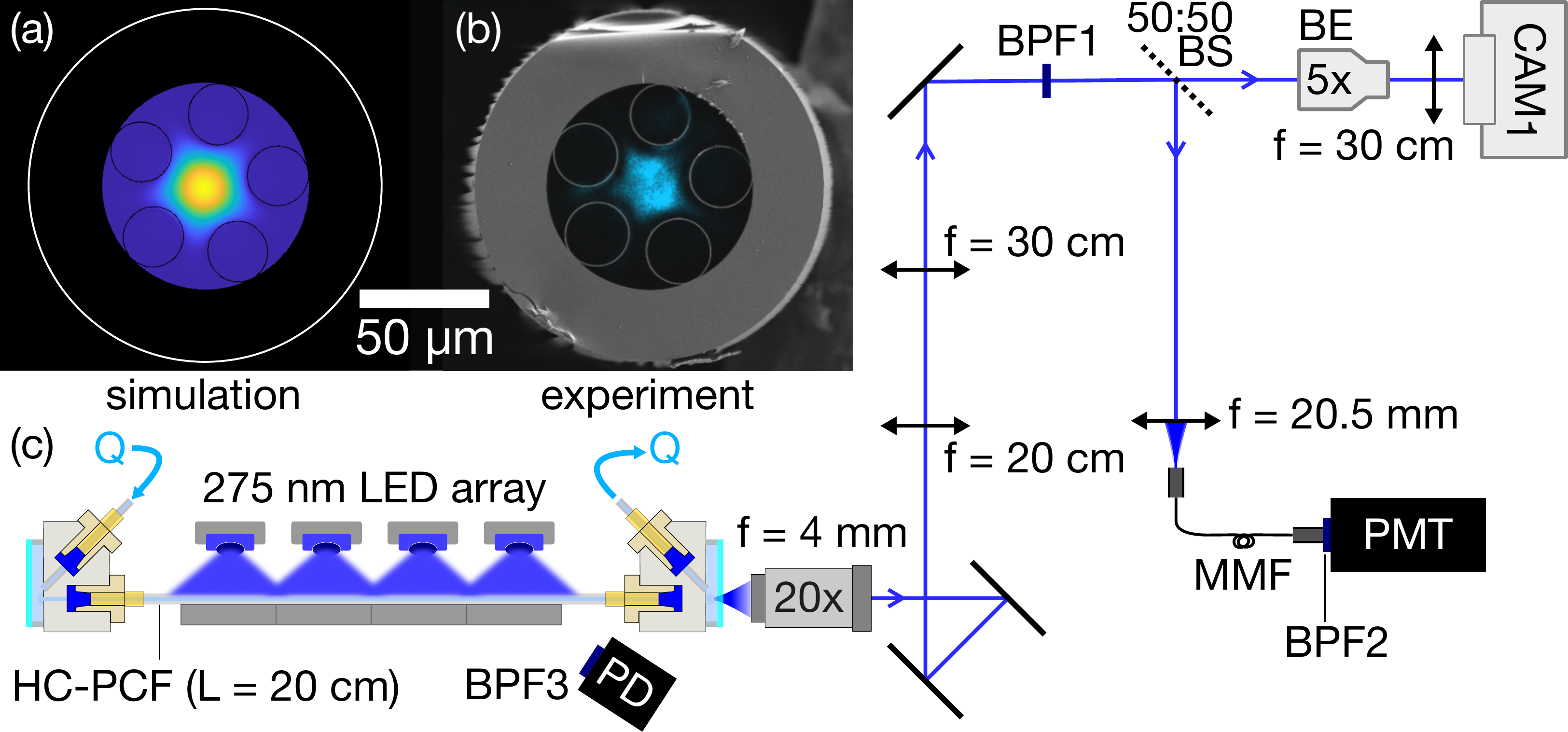 350nm light guided through 25cm of water-filled fibre
